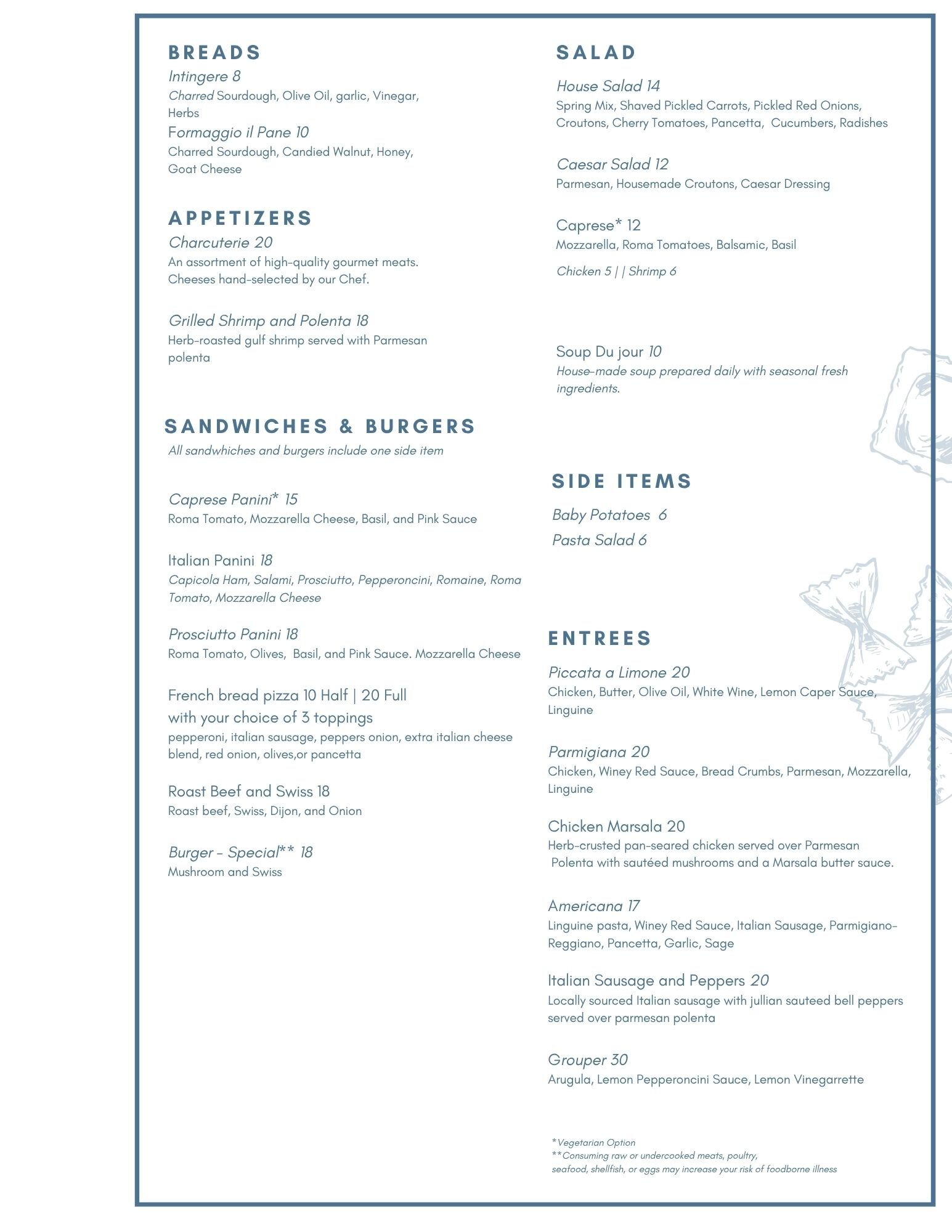 At The Winey Bride, we bring people together over curated wines, craft cocktails, and contemporary Italian cuisine made from scratch. Our menu is rooted in fresh, seasonal ingredients and bold flavors—designed to pair perfectly with your favorite pour. Whether you're stopping in for a handcrafted cocktail or sharing a meal with friends, every bite and sip is a toast to good taste.